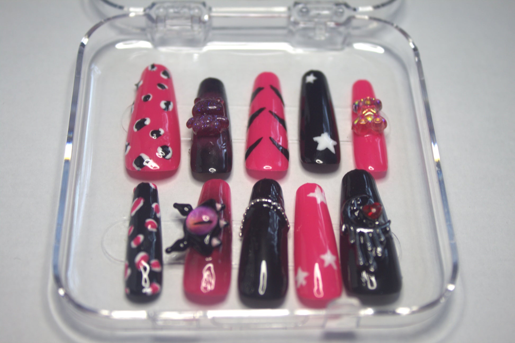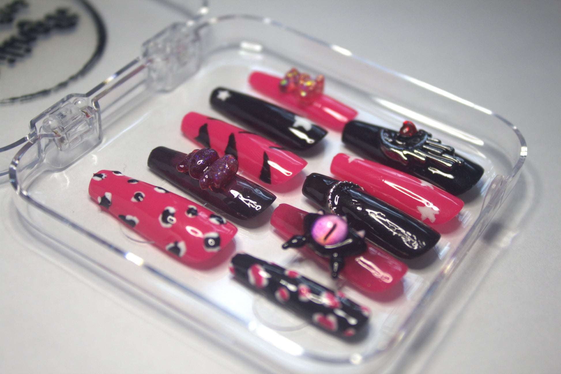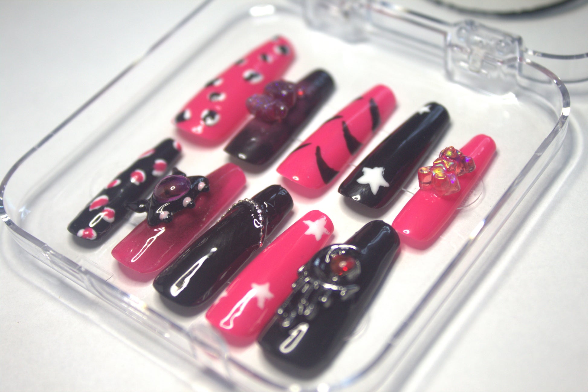 This set comes in three sizes or custom sizes. To know your size measure the longest width of your nail with either a fabric tape. Or you can use a piece of tape over your finger. Mark the two points then take it off and measure it with a ruler. Write down this number and choose from one of the sizes. Custom sizes are also available.