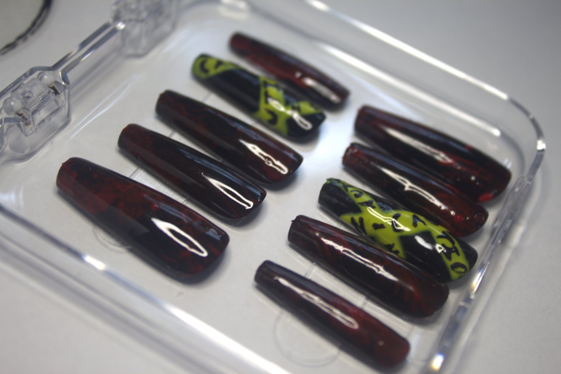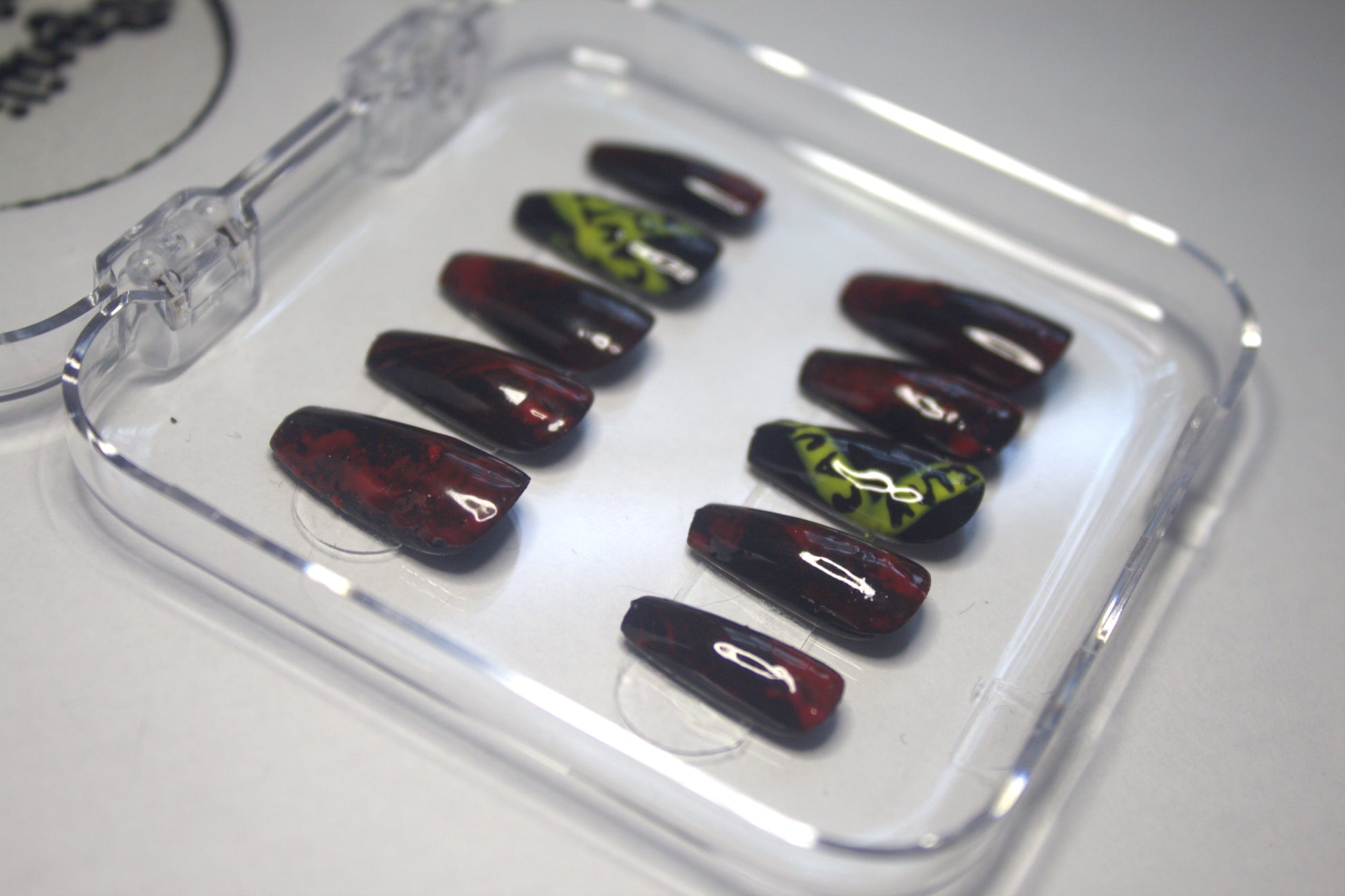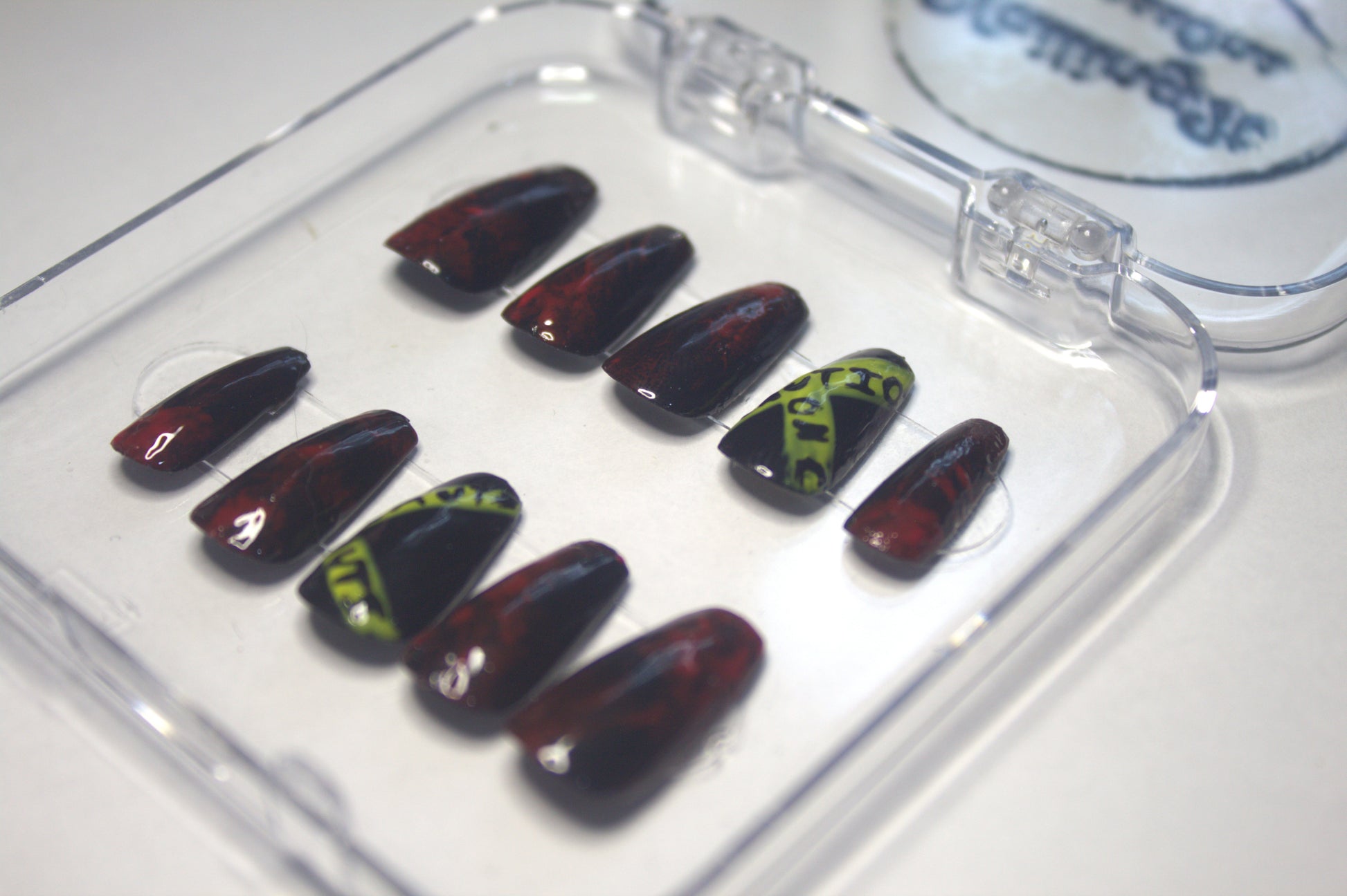 This set comes in three sizes or custom sizes. To know your size measure the longest width of your nail with either a fabric tape. Or you can use a piece of tape over your finger. Mark the two points then take it off and measure it with a ruler. Write down this number and choose from one of the sizes. Custom sizes are also available.