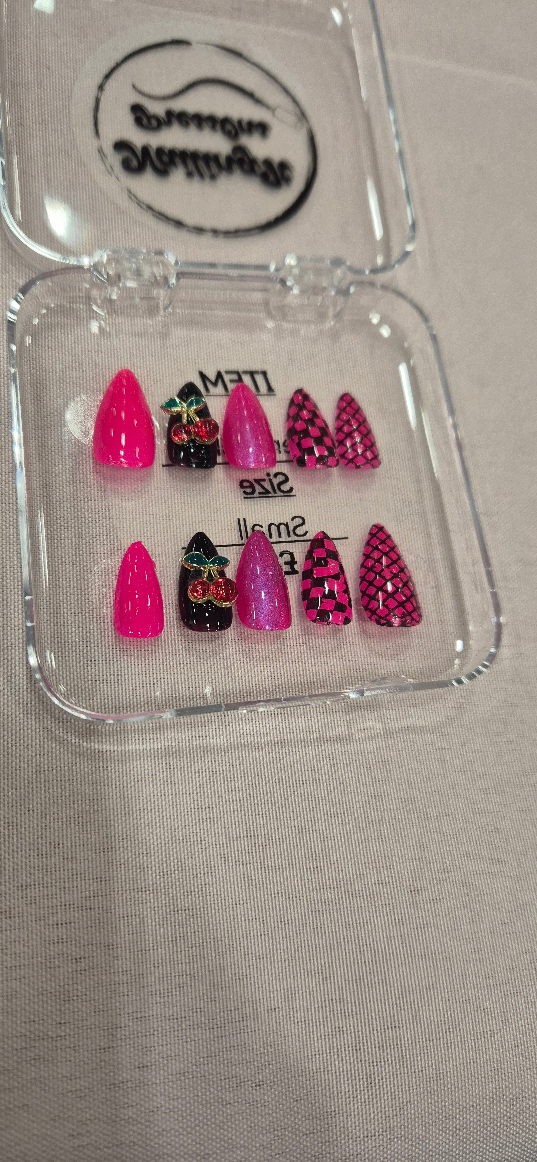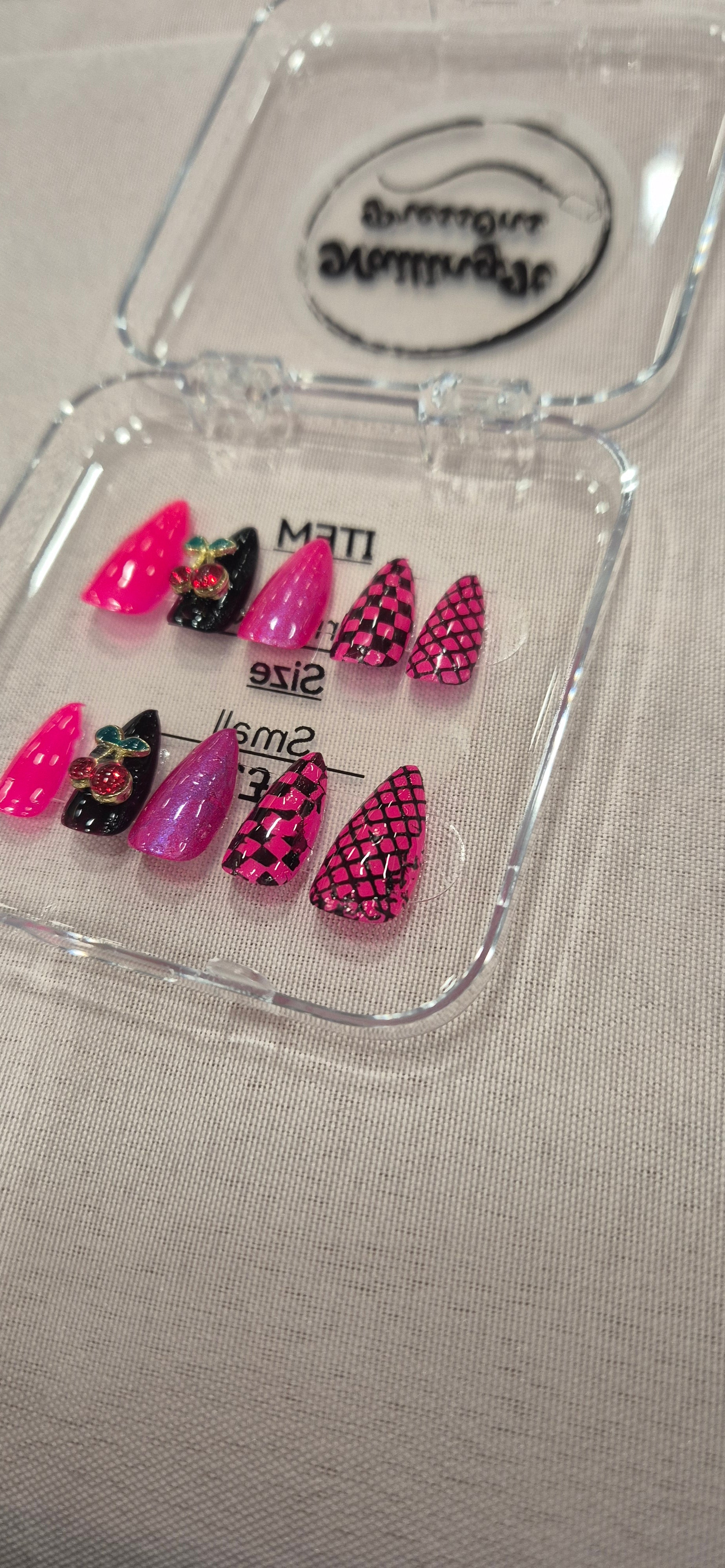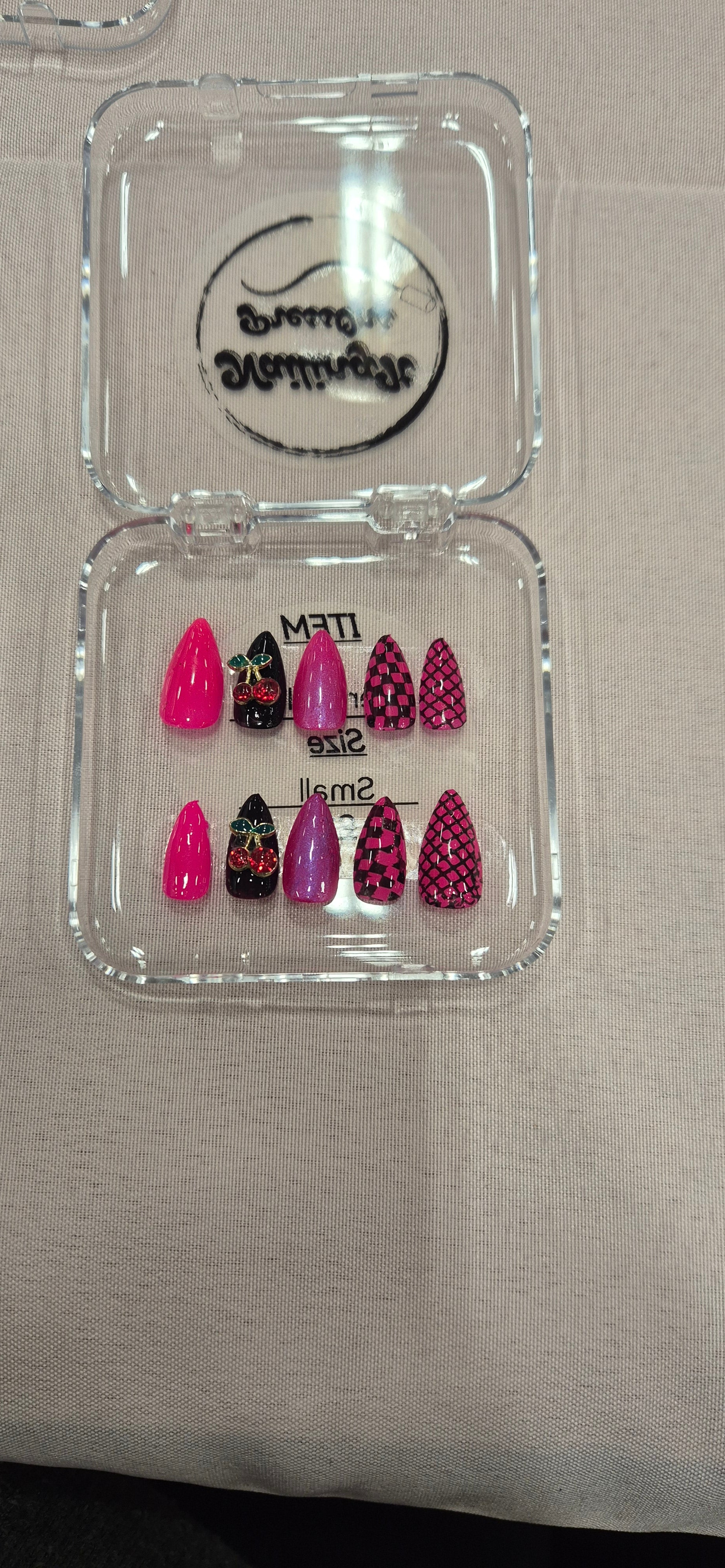 This set comes in three sizes or custom sizes. To know your size measure the longest width of your nail with either a fabric tape. Or you can use a piece of tape over your finger. Mark the two points then take it off and measure it with a ruler. Write down this number and choose from one of the sizes. Custom sizes are also available.