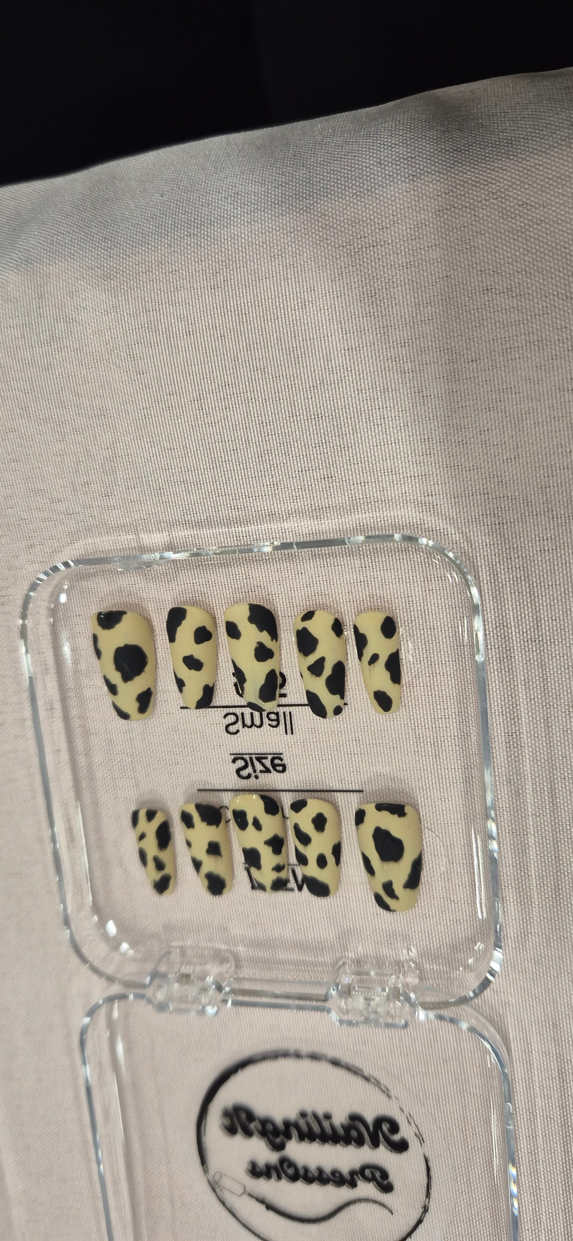 This set comes in three sizes or custom sizes. To know your size measure the longest width of your nail with either a fabric tape. Or you can use a piece of tape over your finger. Mark the two points then take it off and measure it with a ruler. Write down this number and choose from one of the sizes. Custom sizes are also available.
